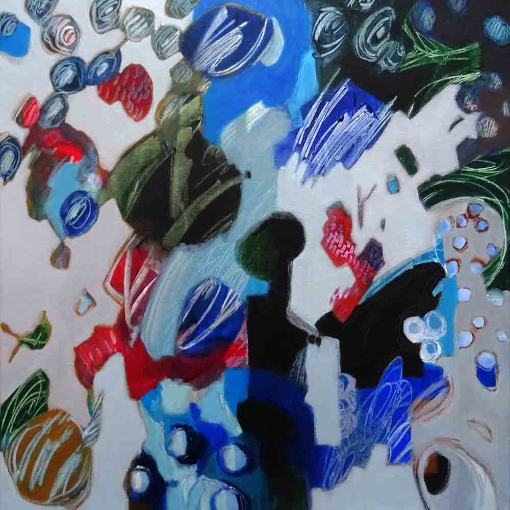Lorsque qu’une silhouette humaine s’est détachée de la composition, comme sur la scène d’un théâtre psychologique, tous les autres éléments du tableau m’ont semblé suspendus aux pendrillons. Dans ce décor factice fait d’ombres et de lumières, l’âme se dédouble.